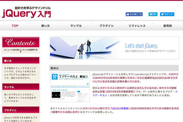 jQueryはレガシーブラウザへの対応では未だに有用です。このサイトはjQueryの入門サイトです(2014年3月に更新終了)。