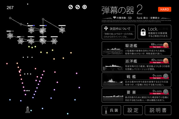 スマホに最適化された弾幕ゲームで、指1本で遊べます。ステージは全部で100!